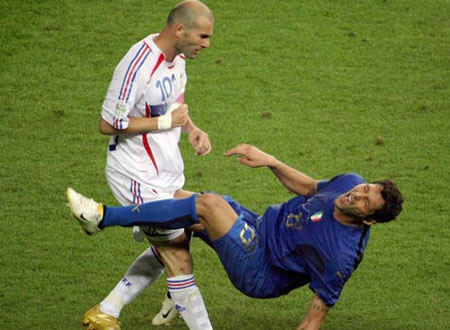 زيدان كان قد قام خلال الشوط الثاني، من مباراة منتخبي فرنسا وإيطاليا خلال مونديال كأس العالم 2006 ، بعد مشادة كلامية قصيرة بضرب ماتيرازي في صدره، وتلقى الفرنسي البطاقة الحمراء وتم طرده من المباراة.